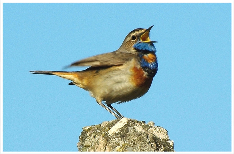 Варакушка — удивительная со всех сторон птица! Её яркий разноцветный передник напоминает оперение тропических птиц. Причудливый полёт по траектории петли позволяет узнать её в небе. Варакушку часто сравнивают с соловьём — её песня такая же красивая и разнообразная.